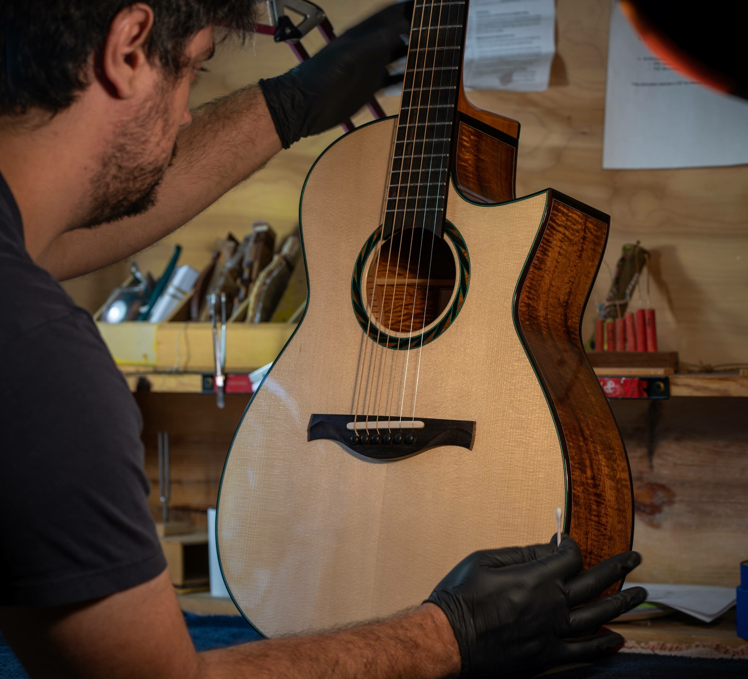 Sitka spruce, Wenge back and sides, Wenge neck, carved rosette, Aboudib inspired